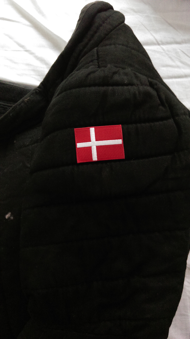 Våbenskjold skal på højre skulder i midten. Dannebrog skal på venstre skulder i midten. Navn skal på højre bryst.